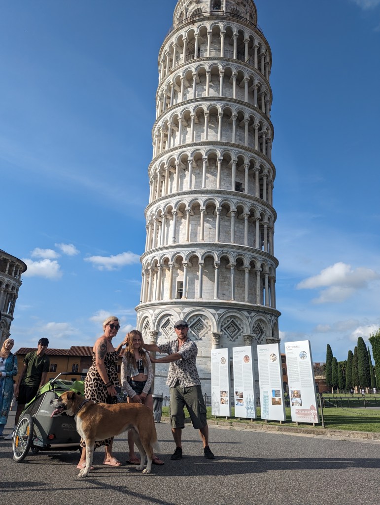 Ein Betonparkplatz in Pisa, Bullenhitze und Mücken bis zum Abkotzen. Zwei Lichtblicke: In der Stadt des schiefen Turms werden wir wieder Mucke vor vielen Menschen machen und werden Renans Nichte Roberta und ihre Freundin Judith treffen, die gerade ebenfalls durch Europa work-and-travelen. Draußen in den Gassen zwei Erkenntnisse: Die Polizie mag keine Verstärker und die Italiener*innen sind weit weniger gebefreudig als wir das aus Deutschland gewohnt sind. Straßenmusik scheint hier einfsch nicht so’n Ding zu sein; drei Sets in Pisa bringen so viel ein wie eines in Düsseldorf oder Heidelberg, und bei Set zwei werden wir von den Carrabinieri zurechtgewiesen, auf den Verstärker zu verzichten.