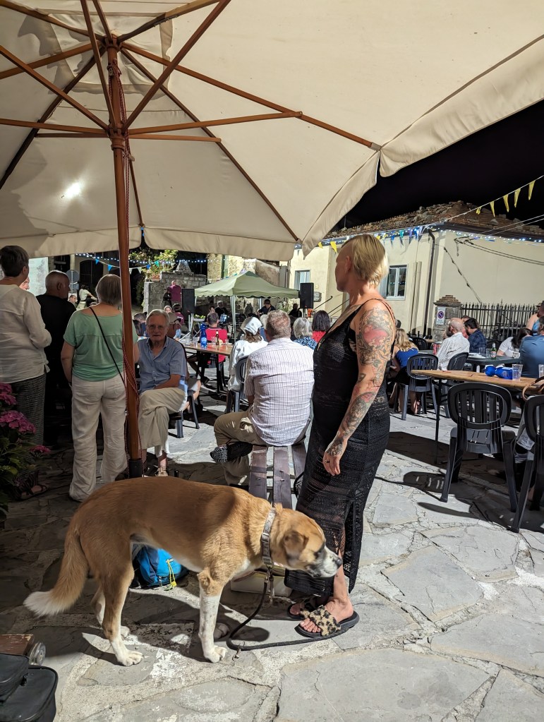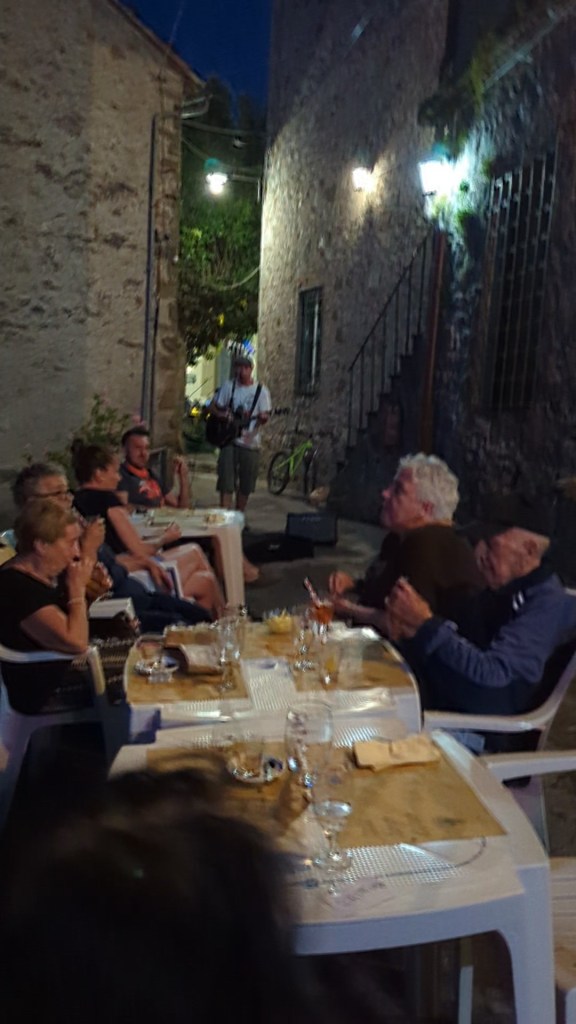 Am Abend vor dem zweiten Konzert, zwei Tage vor unserer endgültigen Abreise aus diesem wundervollem Flecken in der Garfagnana, sind wir zum Pizzaessen nach Montefegatesi eingeladen, verbunden mit einem Abschiedskonzert für die Gäste des Circolo, der einzigen Gastronomie im Dorf. Die Menschen hier sind überwiegend herzlich und gerade die eingeborenen, alteingesessenen Montefegatesianer umspielt eine verschmitzte Freiheit – eine Freiheit, die tief in das philosophische Selbstverständnis des Dante-Dörfchens eingegraben ist. „Your freedom ends at the tip of my nose“, fasst Matheo zusammen, der mit seiner Frau aus dem Süden der USA hierher ausgewandert ist und in dessen Pool wir schwimmen durften. Menschen aus Australien, Großbritannien, anderen Teilen Italiens, Deutschlands und von anderswo leben hier mit den Montefegatesianer*innen. „Es ist komisch, aber das Dorf scheint sich seine Menschen zu suchen, nicht umgekehrt“, sagt Lucia aus Deutschland, die uns mit ihrem Mann zur Pizza ausgeführt hat. Nach dem Konzert und einem Absacker wandern wir durch die glühwurmerhellte Nacht zurück in den Canyon.