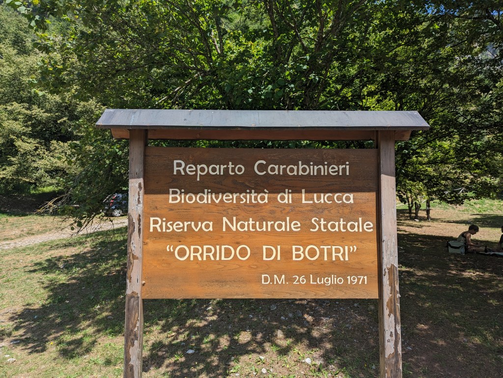 Beim Erkunden der Umgebung stößt Manu auf einen Canyon, der in einem Bergtal hinter Montefegatesi mit Naturschönheiten lockt. Eigentlich wollten wir zurück ins Flachland, denn das einzige, was uns hier oben fehlt, ist ein beschwimmbares Gewässer. Doch nach einer mückenintensiven, heißen Nacht am Fluss Lima bei Fornoli zieht es uns zurück in die Berge und wir steuern den Canyon an, Orrido di Botri.