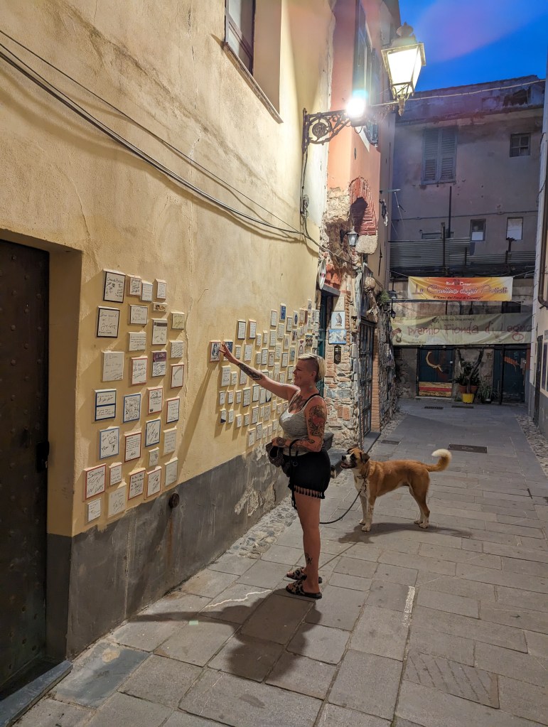Glück im Unglück: Das gewählte BnB und Albenga im Allgemeinen entpuppen sich als Volltreffer. Unser Gastgeber ist selbst ein Globetrotter und mal mit dem Fahrrad zum Nordkap gefahren, und Albenga ist ein Kleinod, was Kunst und Kultur anbelangt. Das Städtchen hat einfach einen guten Vibe und sogar ein paar nette Ecken für Straßenmusik. Es ist übrigens auch nicht zu verachten, mal wieder in einem geräumigen Doppelbett mit Smart-TV zu übernachten, eine eigene Dusche zu haben und alle sonstigen Annehmlichkeiten der postindustriellen, sesshaften Zivilisation.