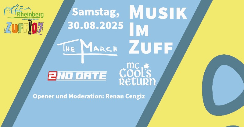 Das renommierte Rheinberger MAP-Festival findet 2025 leider nicht statt. Kein Grund für The March, ihren dort geplanten Auftritt abzusagen: Stattdessen geht es mit der Unterstützung einiger alter Hasen am 30.08. ins ZUFF. Und mit auf der Bühne steht nur Rheinberger Musikurgestein: Die Irish-Folk-Truppe McCool’s Return, die Punkrockband 2ndDate und, äh, ich – zumindest als Opener und Moderator des Ganzen. Wir freuen uns auf einen sehr guten Abend voller exzellenter Alteleutemusik und heißen auch alle jungen Leute herzlich willkommen.