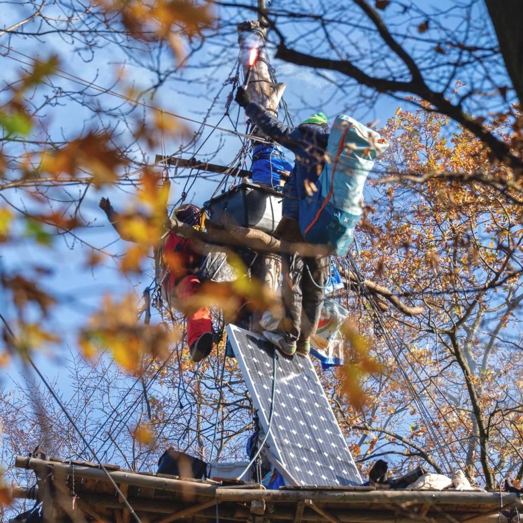 Über Funk riefen Unterstützer:innen den Aktivisti im Wald zu: „We love you! Stay strong! Ihr seid nicht allein!“ Von anderen Waldbesetzungen kamen Solidaritätsbekundungen: „Sündi lebt! Alle Wälder bleiben!“