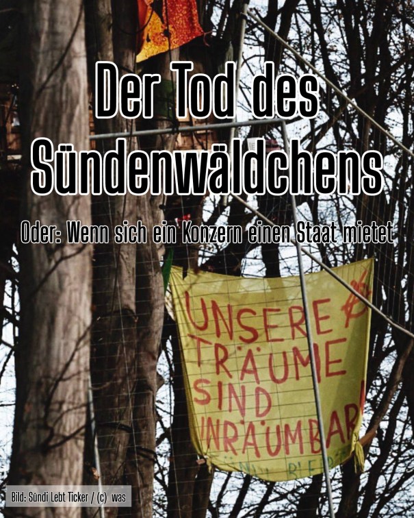 Am Ende des Tages ist das Sündenwäldchen verschwunden. Ein Hektar Wald, ein Jahr Widerstand, Dutzende Bäume – alles weg. Vier Menschen sitzen in kalten Zellen in Köln. RWE hat Sand und Kies für die Böschungen seines künftigen Sees – der Konzern hat seine Interessen durchgesetzt. Die Frage ist, was wir daraus machen.